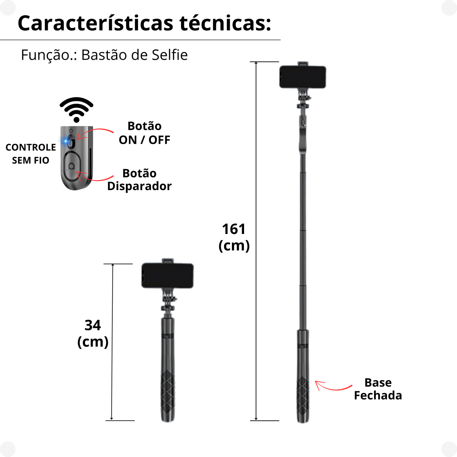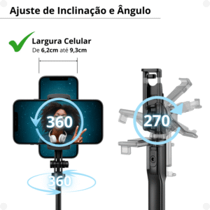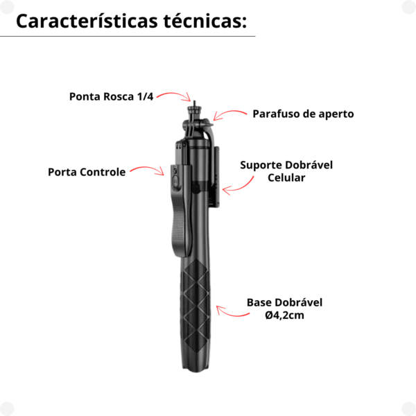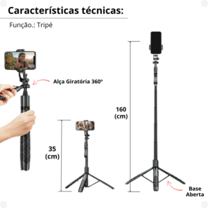 Bastão Tripé Pau Selfie Bluetooth Celular c/ Controle 1,60m