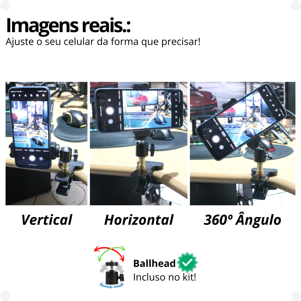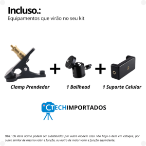 Clamp Prendedor para Celular c/ Ballhead + Suporte Celular