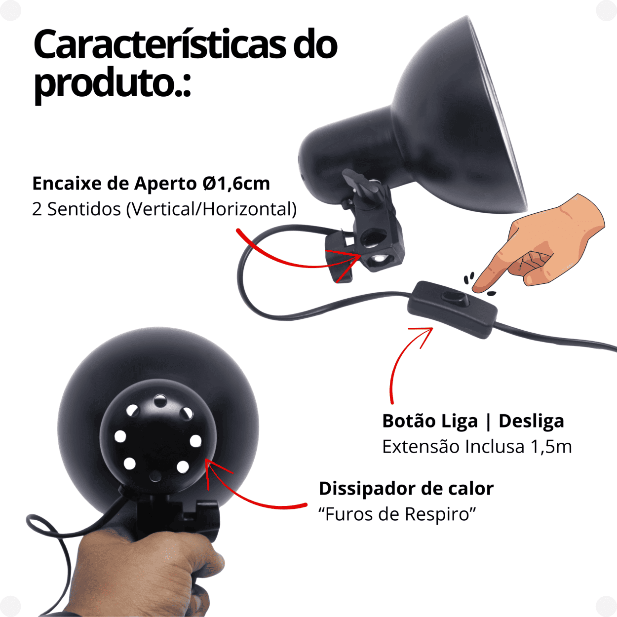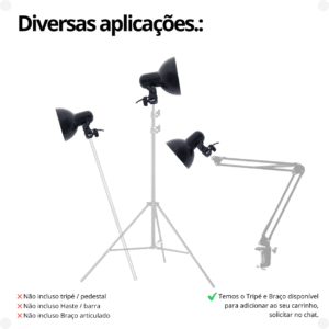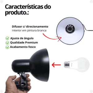 Luminária Abajur Bivolt p/ Tripé Cúpula Articulada Leitura