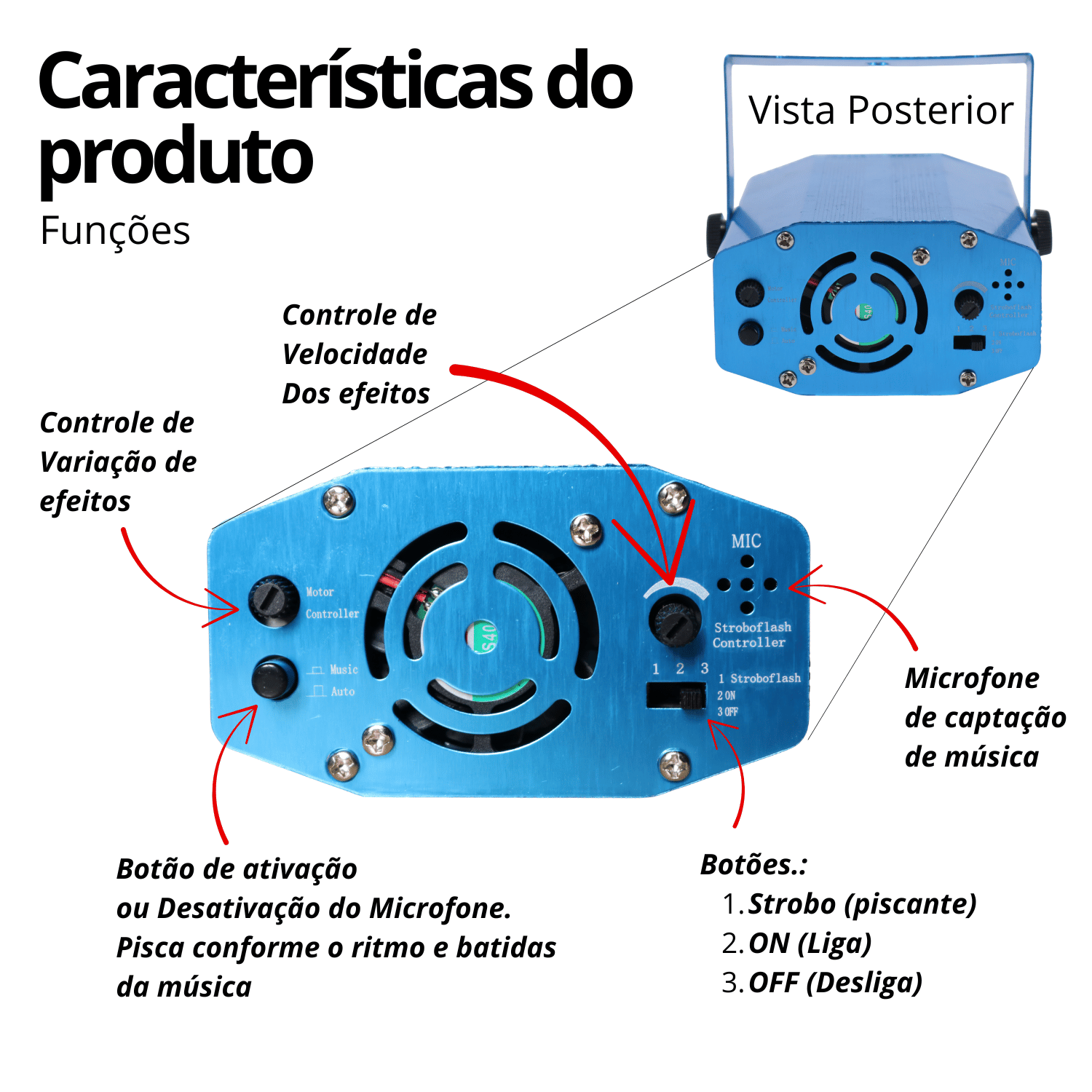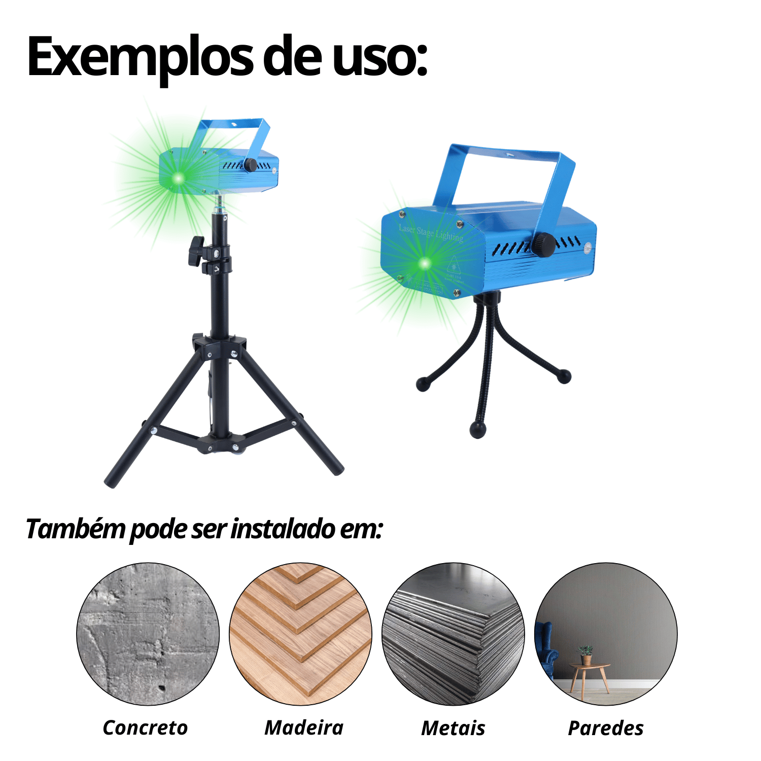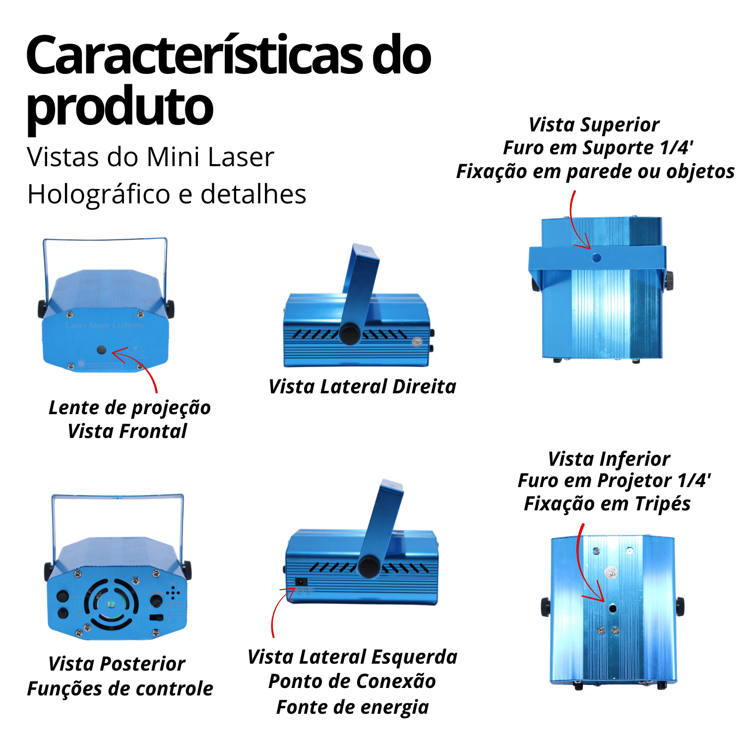 Transforme qualquer ambiente com o Mini Projetor Holográfico Laser, que traz efeitos visuais impressionantes em vermelho e verde. Compacto e leve, ele oferece controle total dos efeitos e sincronização com música, garantindo uma experiência