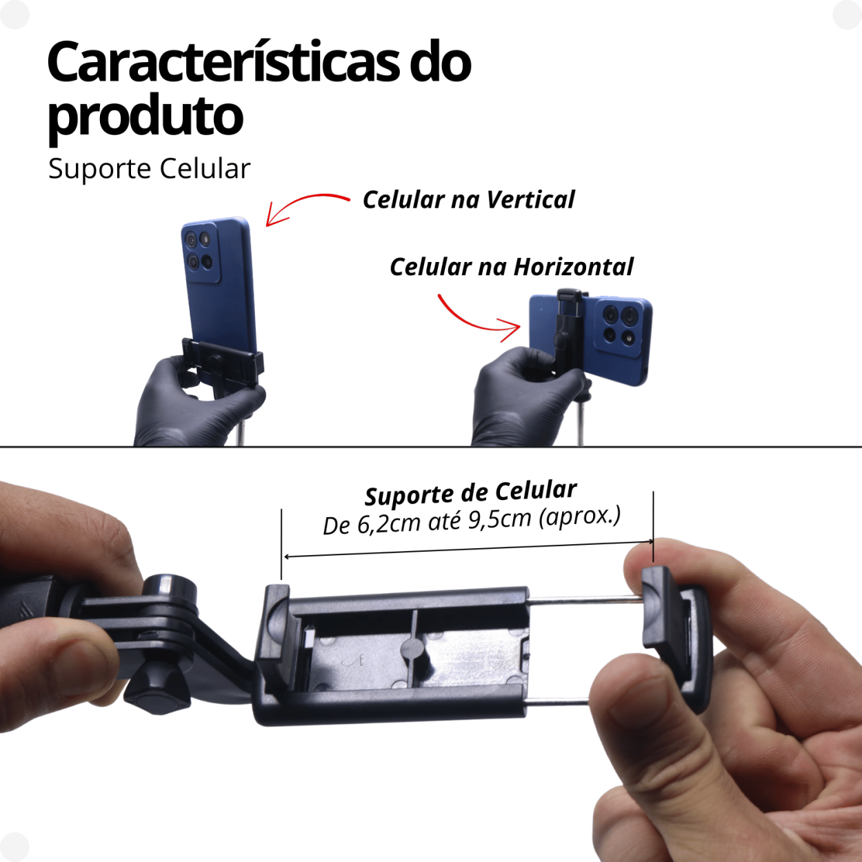 Fabricado em aço inoxidável e plástico resistente, é um acessório durável, moderno e ideal para estúdios, viagens, eventos, reuniões ou uso diário. Leve, funcional e fácil de montar, é a solução prática para quem quer melhorar a qualidade das fotos e vídeos sem complicação.