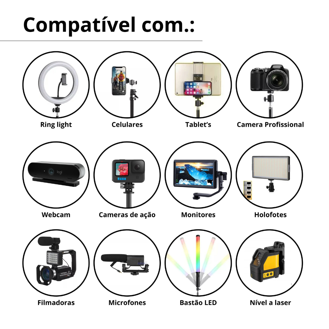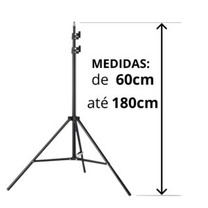 Feito em alumínio, leve e versátil para transportar, prático e fácil de instalar em diversos ambientes tendo ajuste de 60cm até 180 cm de altura para melhor se adaptar as suas necessidades, sendo ideal para lives, vídeo-aulas, reuniões da empresa, filmagens, podcasts, estúdio de fotos, iluminação de eventos e festas, trabalhos home office e gravações do seu negócio.