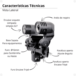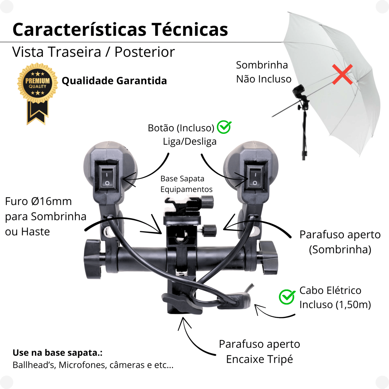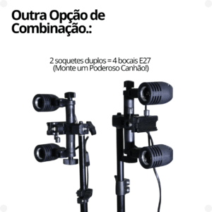 Soquete Duplo E27 c/ Tripé 2,10m c/ Interruptor cabo 1,50m