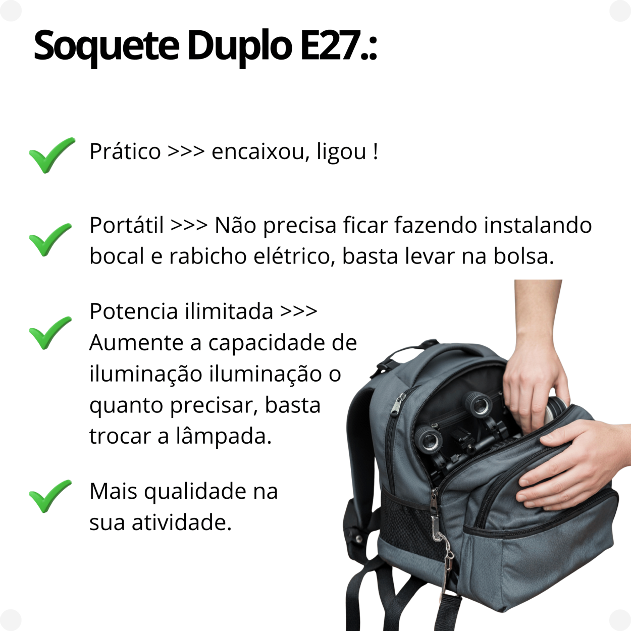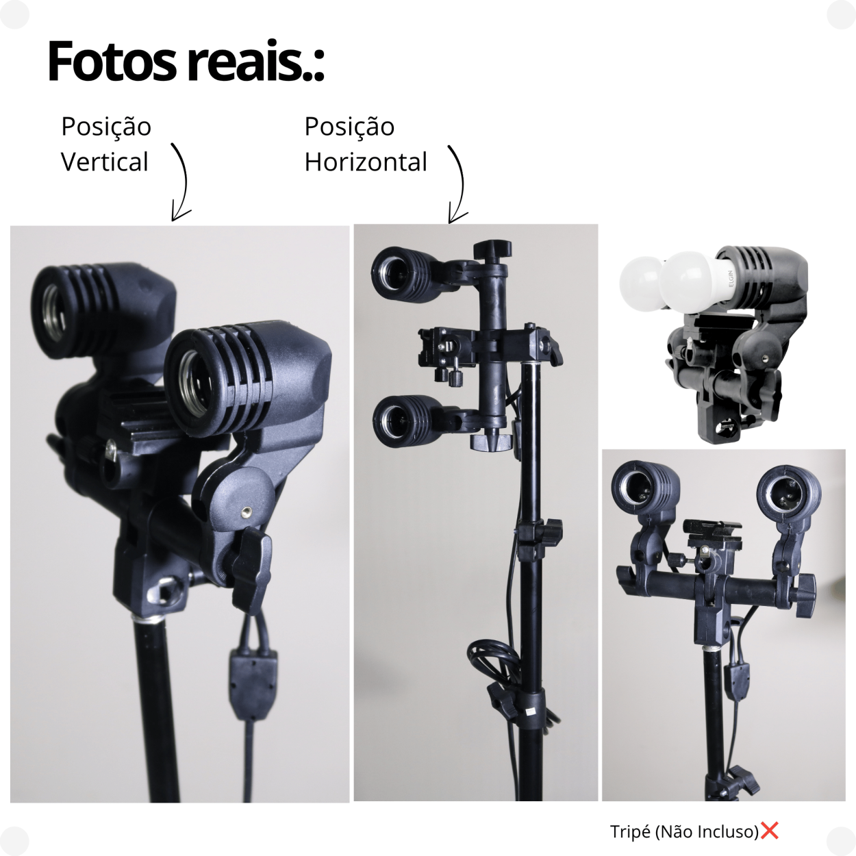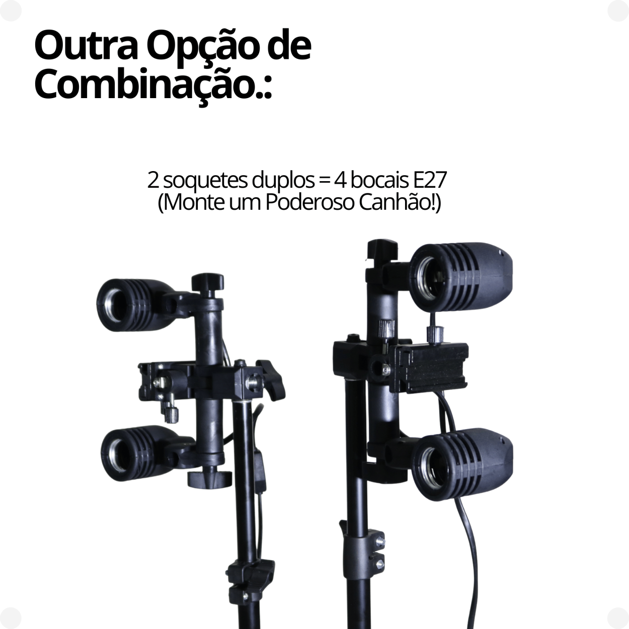 Soquete Duplo E27 p/ Tripé 2,10m c/ Interruptor cabo 1,50m