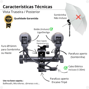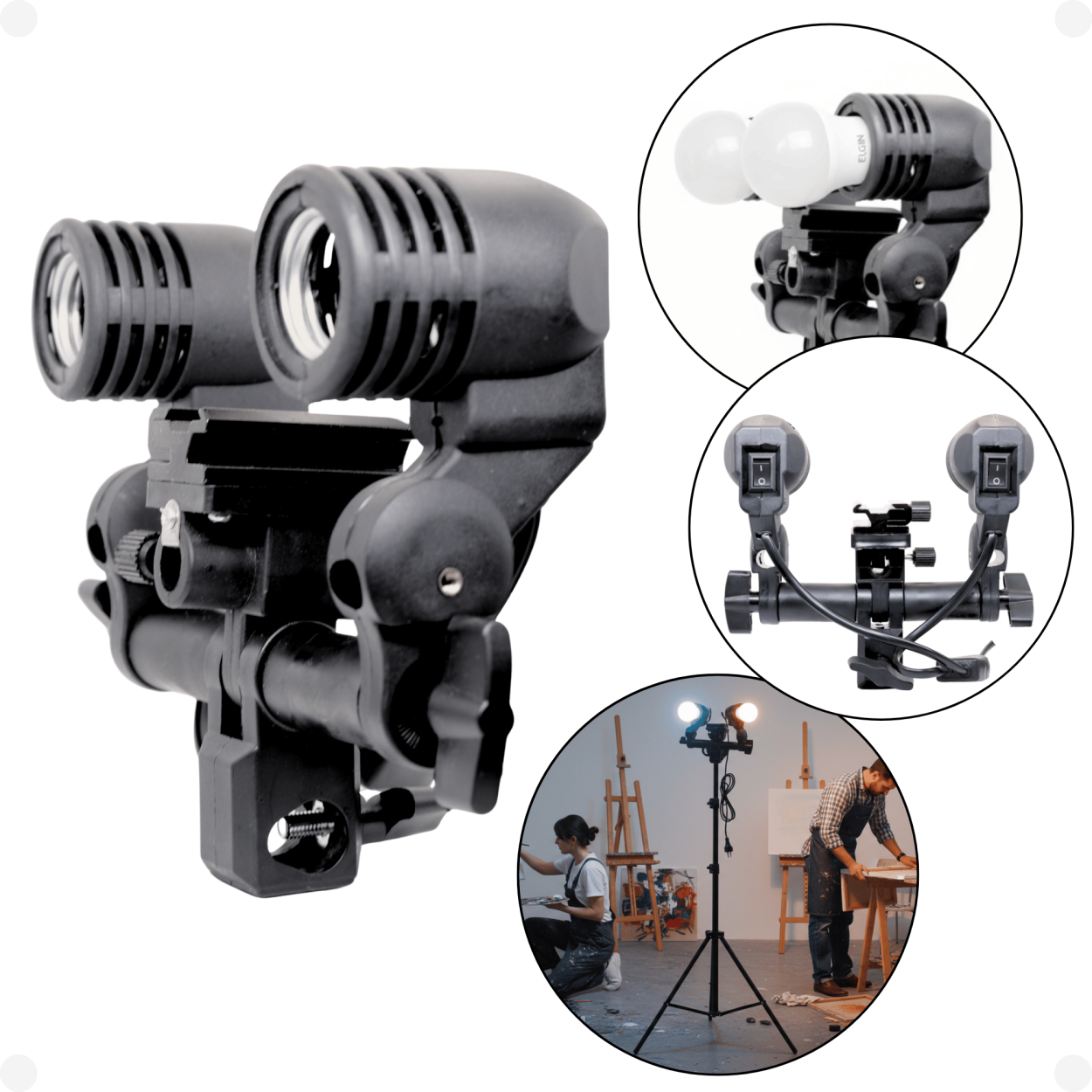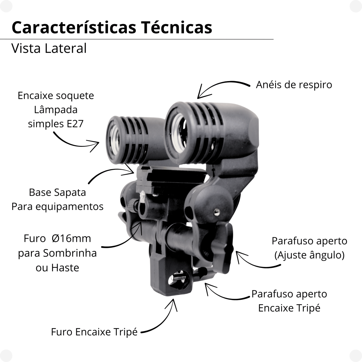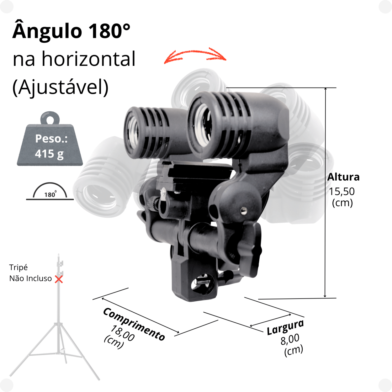 Soquete Duplo E27 p/ Tripé 2,10m c/ Interruptor cabo 1,50m