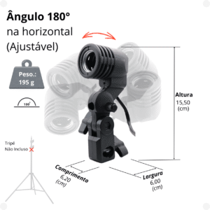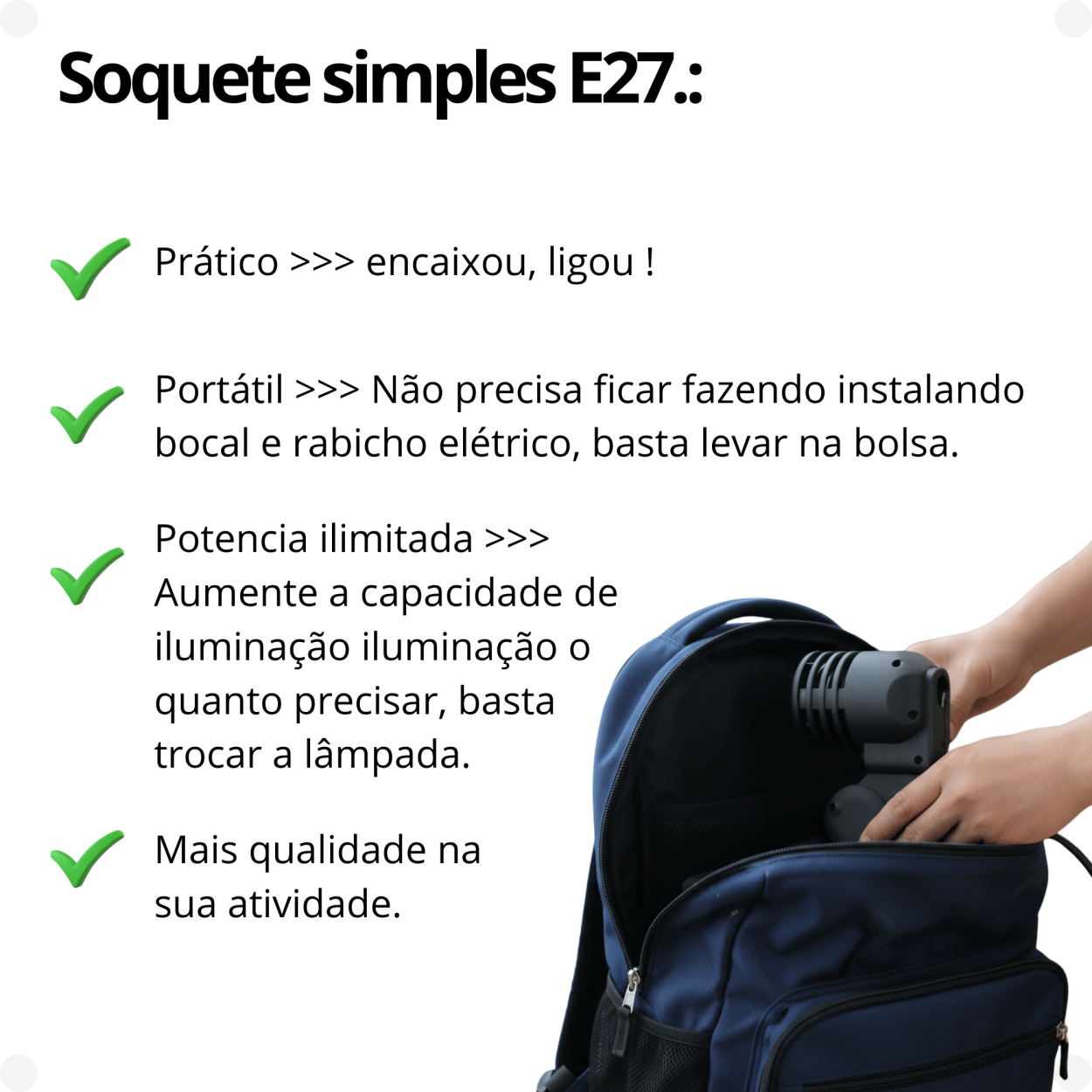Além de contar com encaixe por pressão, interruptor embutido e cabo de 1,5 metro, o soquete possui ajuste de ângulo de 180°, podendo ser utilizado nas posições vertical ou horizontal, garantindo versatilidade total na iluminação. O modelo é bivolt (110–220V), compatível com rosca padrão E27, e oferece praticidade para quem deseja adaptar diferentes tipos de lâmpadas com segurança e estabilidade.